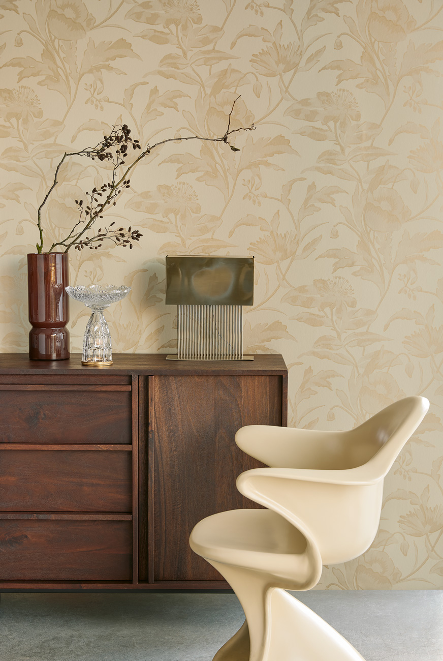 Gilded geeft je interieur glans. Letterlijk en figuurlijk. Maak een groots statement met het uitwaaierende bladdessin met een fascinerende schaduwwerking en satijnachtige glans. Of kleed je muren aan met een bloemenpatroon dat doet denken aan het allerfijnste kant.