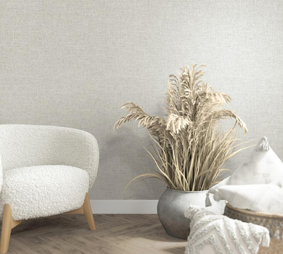 Het dessin 33388 uit de collectie Textures Neutral Walls van Noordwand is behang met linnen uni patroon.