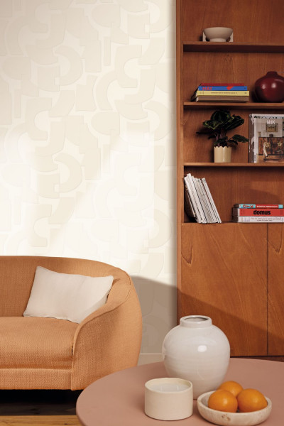 Het dessin Volume 106050005 uit de collectie Origine van Caselio is behang met een wit geometrisch patroon.