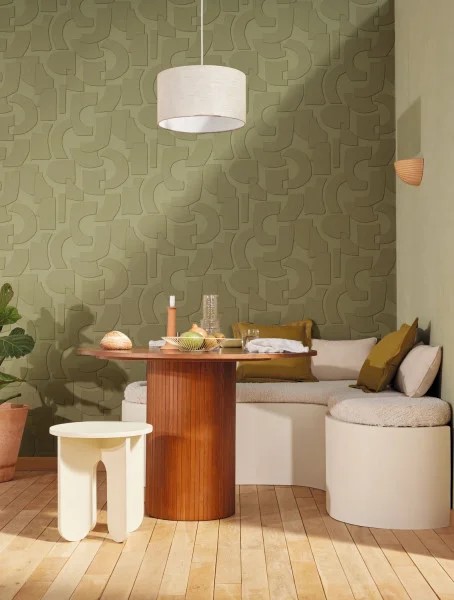 Het dessin Volume 106057112 uit de collectie Origine van Caselio is behang met groen geometrisch patroon.