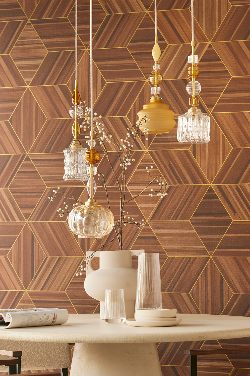 Het dessin 340181 uit de collectie Gilded van Eijffinger is een behang met een geometrisch design.