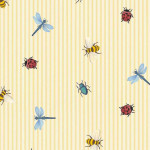 Het dessin 363180 uit de collectie Tiny Treasures van Eijffinger is behang met strepen en insecten.