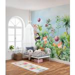 Het dessin First Day of School uit de collectie Into Wonderland van Komar is een behangpaneel met dieren.