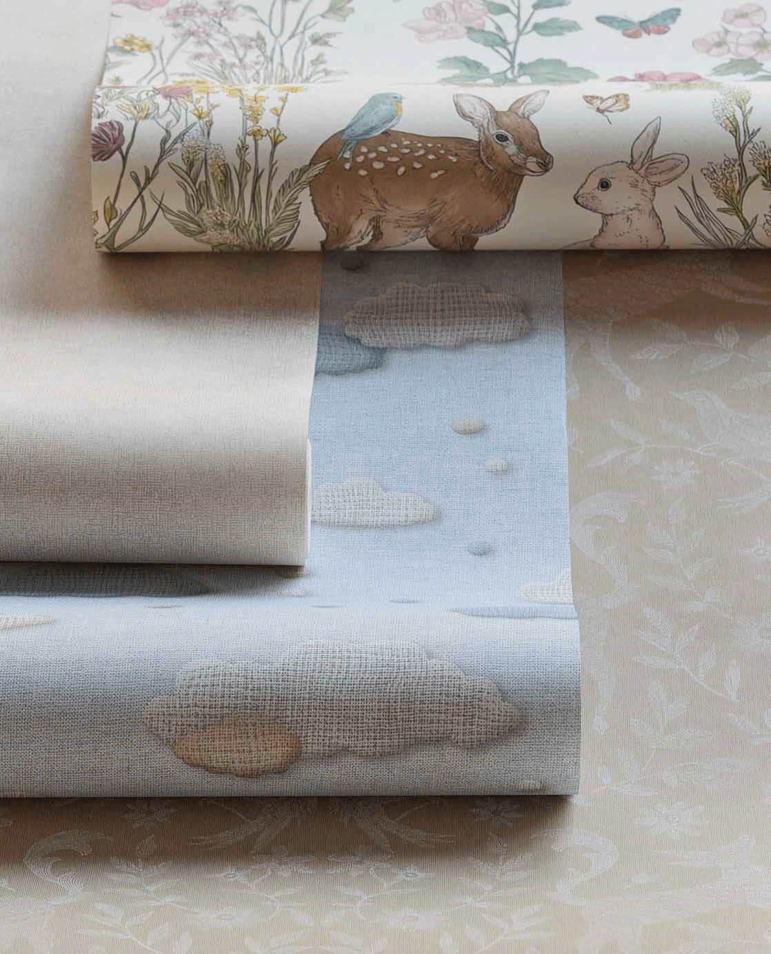 Denk aan vrolijke prints, zachte pasteltinten, grappige illustraties en verrassende details waar je elke keer weer iets nieuws in ontdekt. Van fantasierijke dieren en dromerige landschappen tot grafische patronen met een moderne twist. Deze collectie maakt van elke muur een blikvanger.