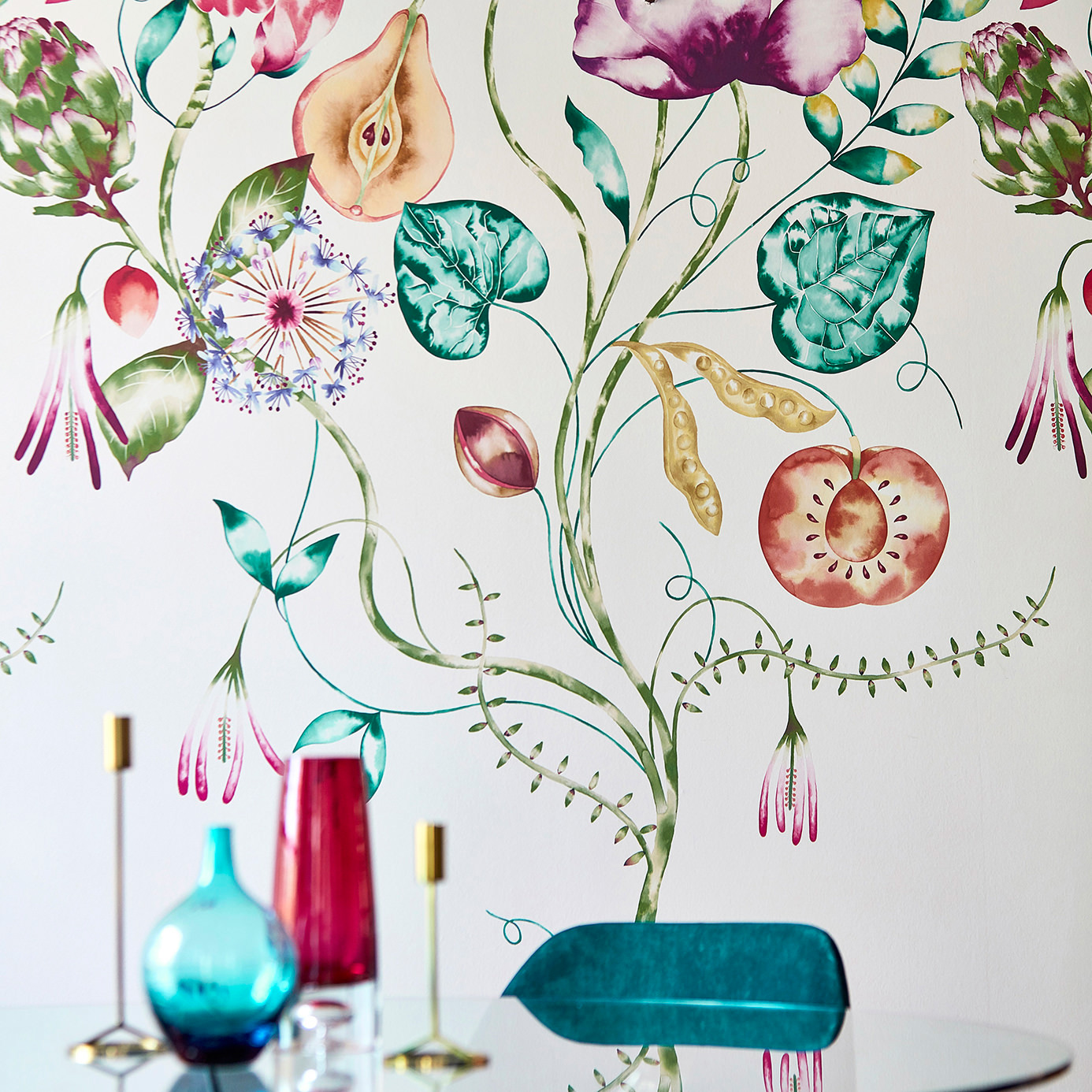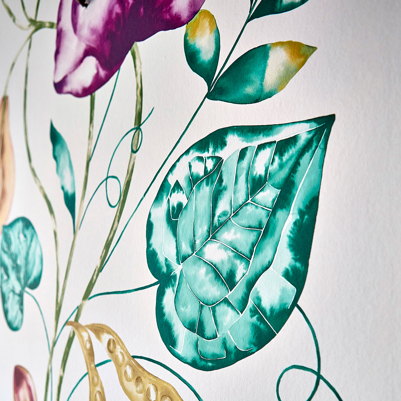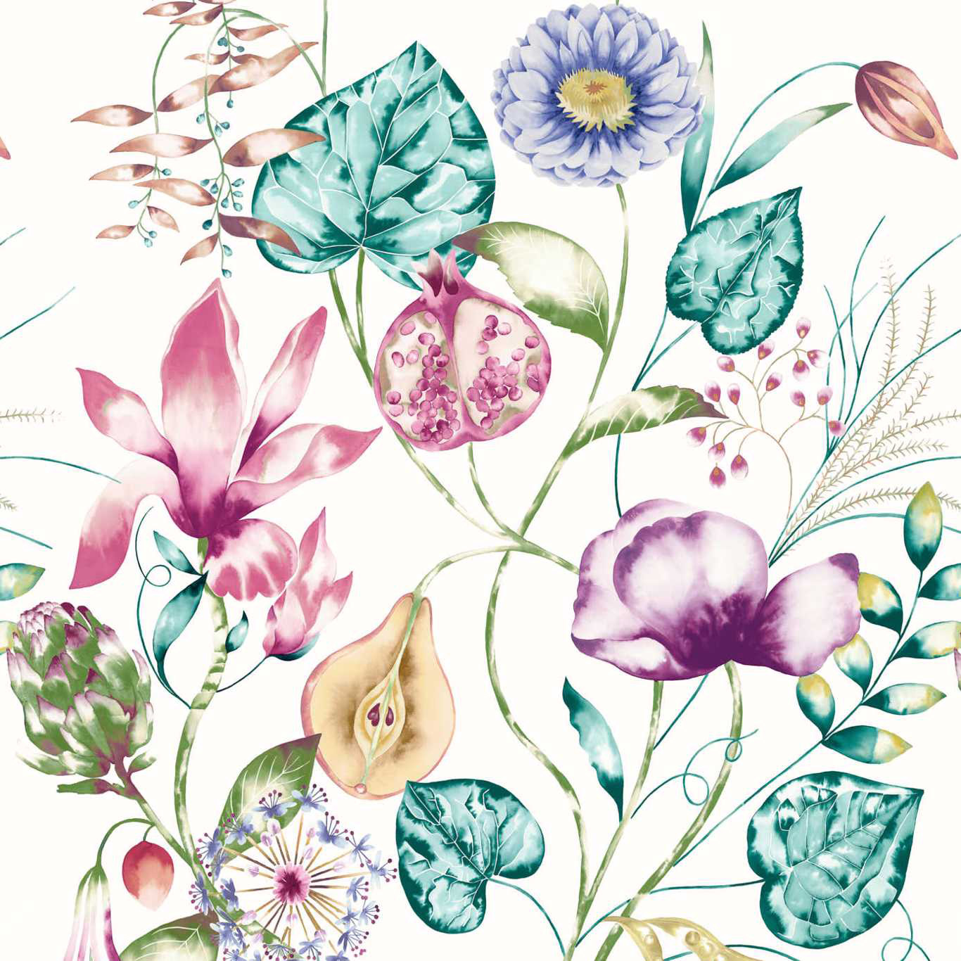 Mooi behang met een leuk natuur patroon. Behang gemaakt door Harlequin. 111775 Quintessence. Verkrijgbaar in 3 kleuren.