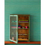 Lichtgroen vliesbehang, gecombineerd met donkere blauwtinten en goudkleurige details. De kleurcombinatie doet gebalanceerd, maar valt desondanks op. Over het geheel ligt een subtiele glanslaag.