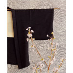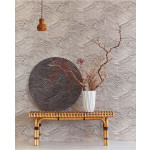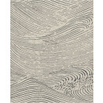 Beige vliesbehang met zwarte lijnen die een zee met golven vormen.