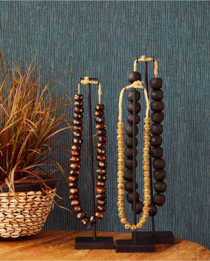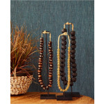 Turquoise vliesbehang met blauwe streepjes. Het behang heeft een lichte structuur.