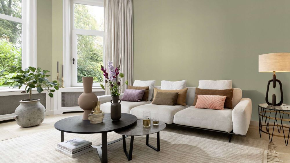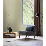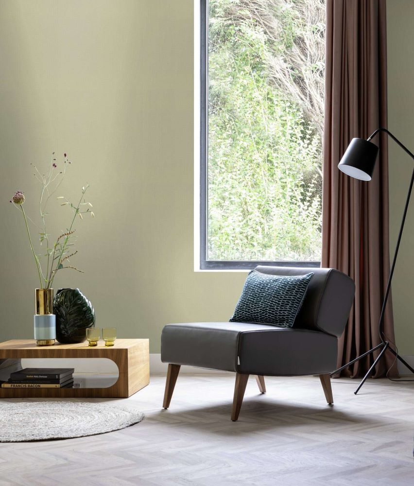 Het behang in een delicate groentint creëert een frisse en kalmerende sfeer. De zachte kleur doet denken aan vers gras of een lentebos, waardoor de ruimte een natuurlijke lichtheid krijgt. Het gelijkmatige textieleffect zorgt voor een elegante maar ingetogen uitstraling die harmonieus samengaat met diverse interieurstijlen. Dit behang is bijzonder geschikt voor ruimtes waar een ontspannen en natuurlijke sfeer gewenst is, zoals slaapkamers of woonkamers.