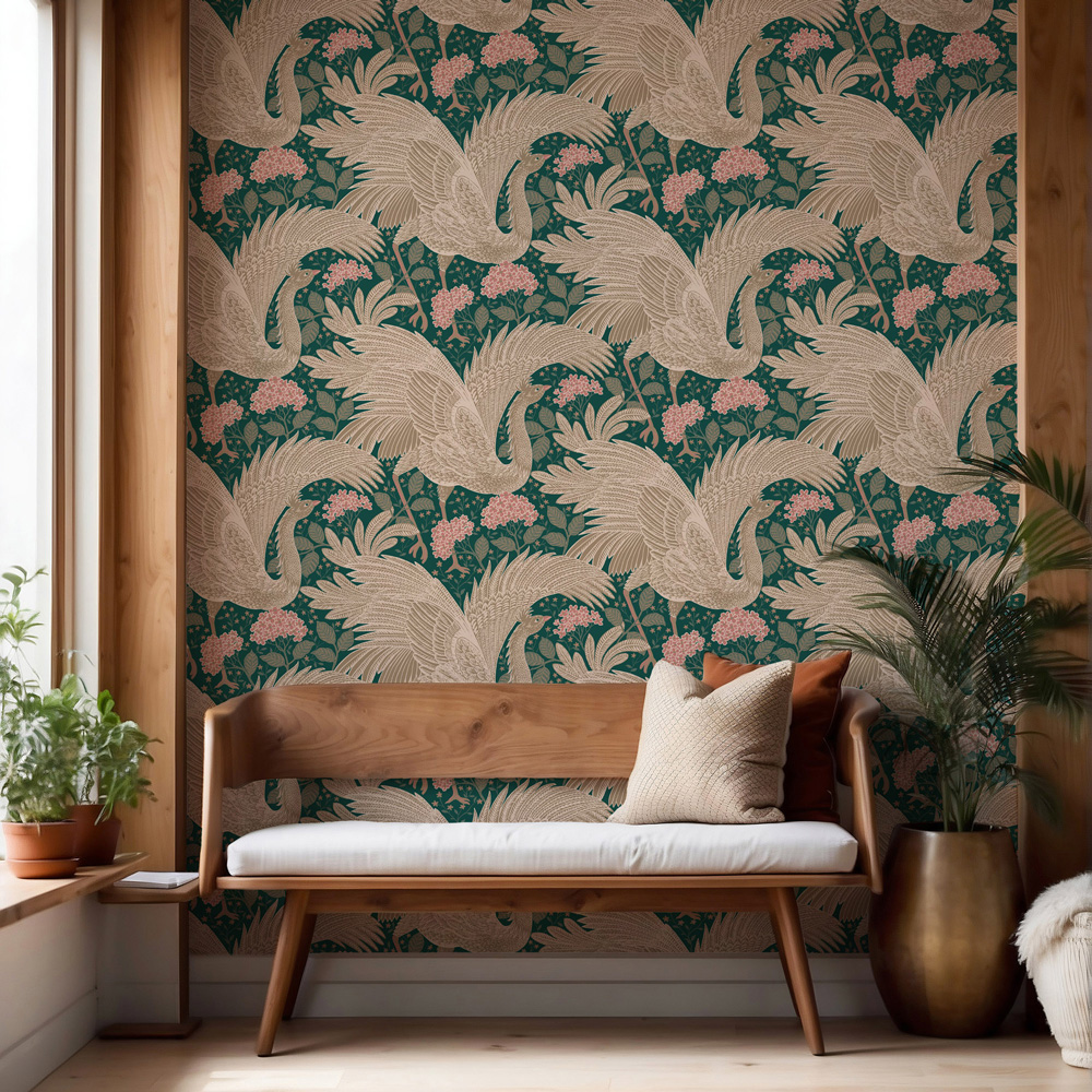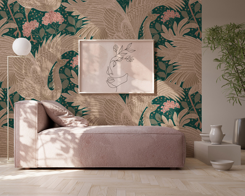 Het dessin Proud Birds - Forrest uit de collectie Days of Bloom van Dutch is behang met een luxe uitstraling. Het natuurdessin bestaat uit planten en dieren.