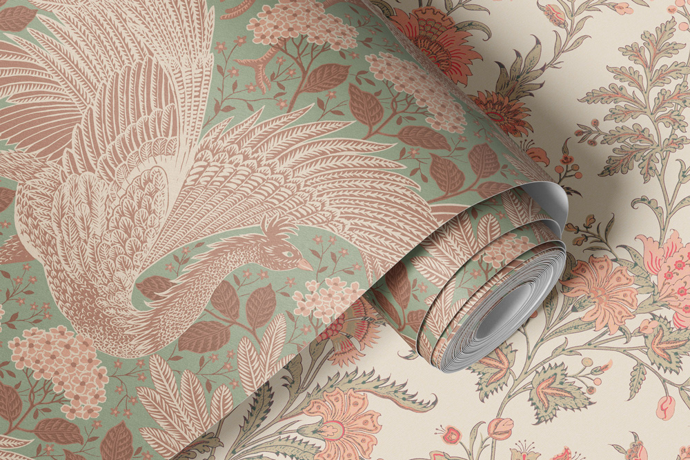 Het dessin Proud Birds - Minty uit de collectie Days of Bloom van Dutch is behang met een luxe uitstraling. Het natuurdessin bestaat uit planten en dieren.