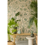 Het dessin 350687 uit de collectie Amber van Eijffinger is een behangpaneel met een groen bloemenpatroon op een beige achtergrond.