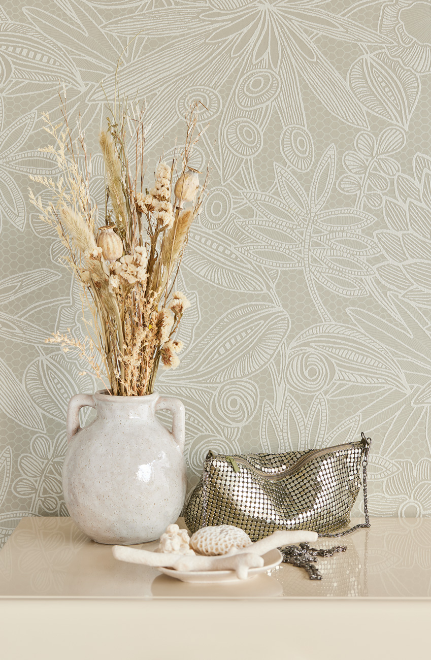 Gilded geeft je interieur glans. Letterlijk en figuurlijk. Maak een groots statement met het uitwaaierende bladdessin met een fascinerende schaduwwerking en satijnachtige glans. Of kleed je muren aan met een bloemenpatroon dat doet denken aan het allerfijnste kant.