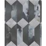 Vliesbehang met een geometrisch patroon in het grijs en zwart.