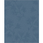 Blauw vliesbehang met blauwe bloemen.