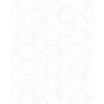 Wit vliesbehang met op de achtergrond kleine zilveren driehoekjes en op de voorgrond een goud honingraat patroon.