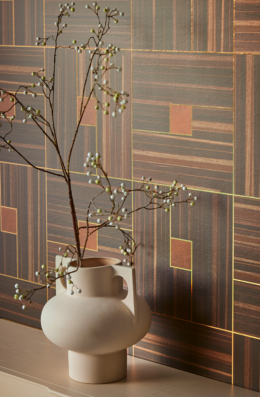 Het dessin 340183 uit de collectie Gilded van Eijffinger is een behang met een geometrisch design.