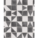 Wit vliesbehang met een geometrisch patroon van zwarte vierkanten en driehoeken met gouden details. Dit behang komt uit de collectie Mini Me van Eijffinger.