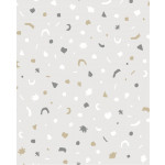 Lichtgrijs vliesbehang met kleine witte, donkergrijze en lichtbruine figuurtjes. Dit behang komt uit de collectie Mini Me van Eijffinger.