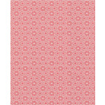 Lichtrood vliesbehang met een wit bloemenpatroon.