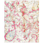 Muurposter 'Faded Wall Red'. Deze wandposter heeft een opdruk van verschillende sierlijke bladeren op een rode achtergrond. Het effect is gecreëerd alsof de afbeelding door de jaren heen vervaagd is wat het geheel iets authentieks geeft.