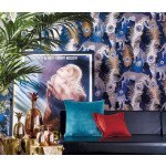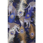 Een collectie met glamour en het kleurrijke exotische thema die het Cubaanse tijdperk met zich meebrengt; verbluffende designs van exotische flora tot exotische dieren met bijpassende kleurenthema's. Leuker kan het haast niet!Een fantastische samenstelling van luipaarden tussen pauwenveren op een matzwarte achtergrond met paarse en warm gouden metallic accenten.