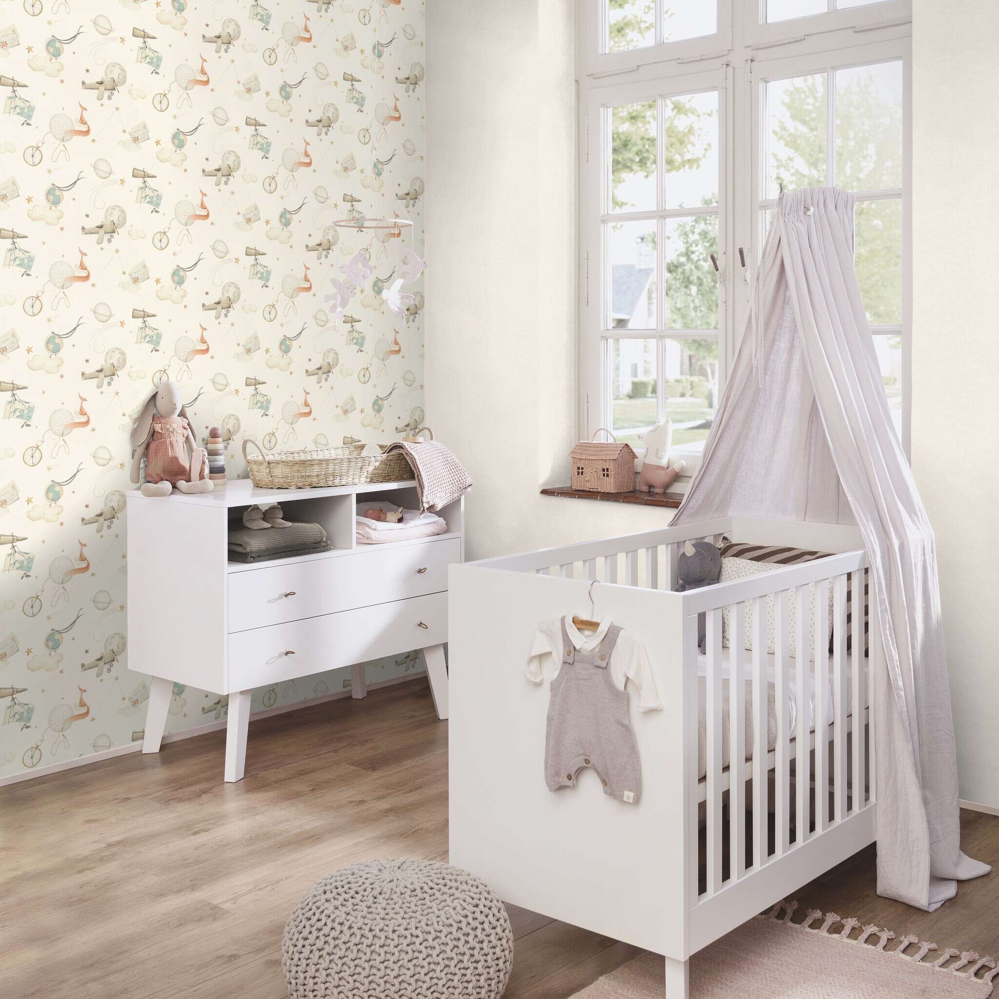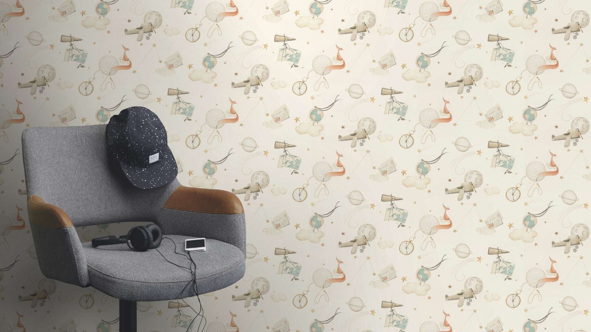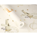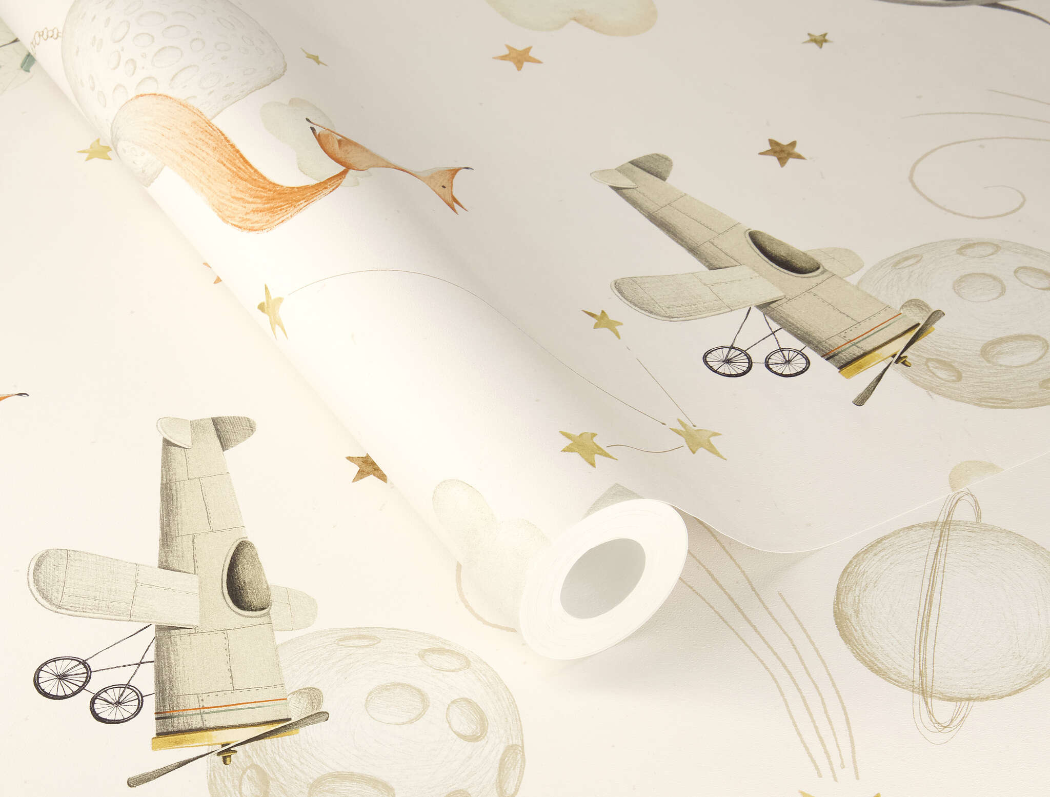 Stel je een kamer voor waar de verbeelding van een kind de muren siert en zachte kleuren en verhalen elke hoek vullen. Kids World II is geïnspireerd door de tederheid van de kindertijd en de stille verwondering die schuilt in alledaagse avonturen. Waterverfballonnen zweven rustig door de lucht, vintage vliegtuigen vliegen over dromerige landschappen, bosdieren gluren vanuit verborgen hoekjes, en kleine danseresjes draaien rond in het licht. Elk ontwerp nodigt uit om te dromen, te ontdekken en te groeien.