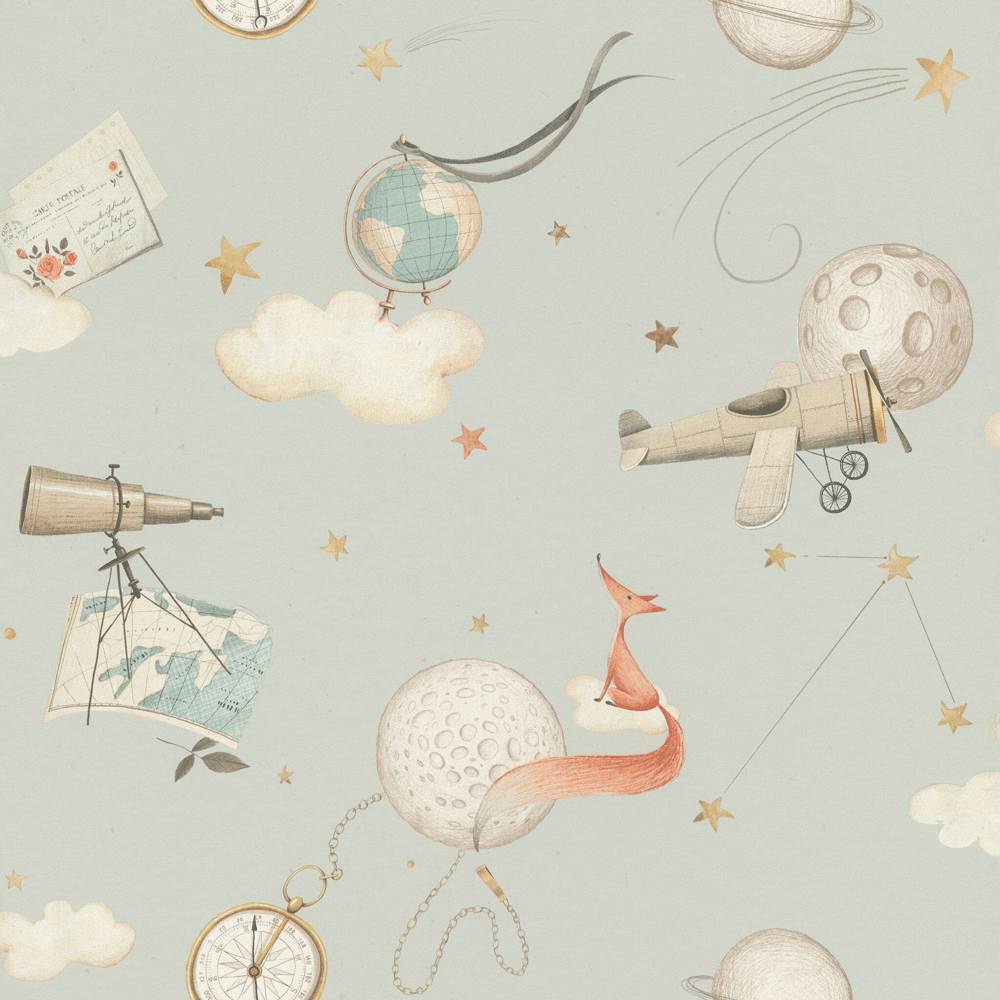 Stel je een kamer voor waar de verbeelding van een kind de muren siert en zachte kleuren en verhalen elke hoek vullen. Kids World II is geïnspireerd door de tederheid van de kindertijd en de stille verwondering die schuilt in alledaagse avonturen. Waterverfballonnen zweven rustig door de lucht, vintage vliegtuigen vliegen over dromerige landschappen, bosdieren gluren vanuit verborgen hoekjes, en kleine danseresjes draaien rond in het licht. Elk ontwerp nodigt uit om te dromen, te ontdekken en te groeien.