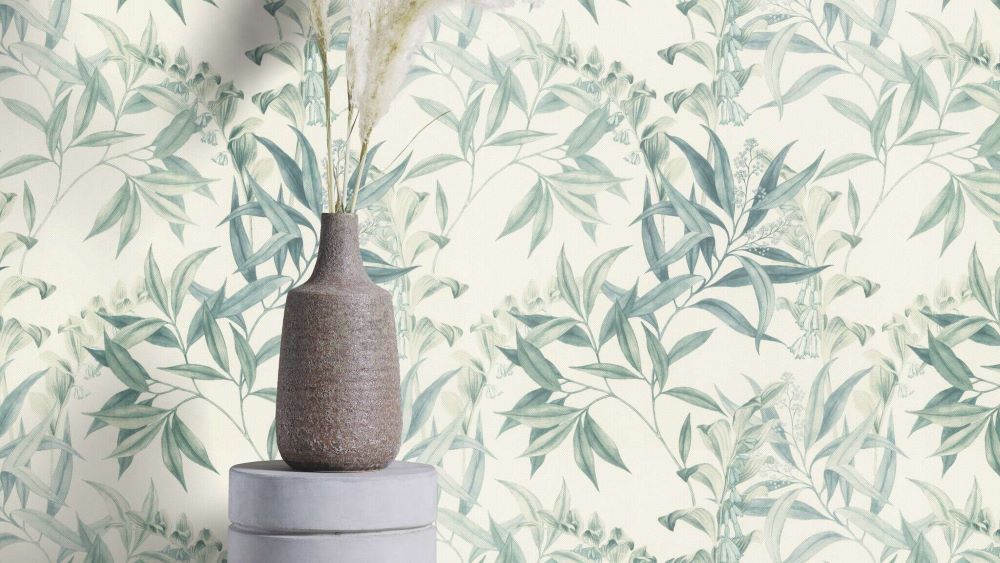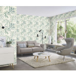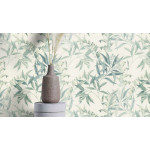 Dit behang betovert met een delicaat bloemenpatroon in koele groentinten, dat elegant uitstrekt over een lichte, licht crèmekleurige achtergrond. De fijn getekende bladeren en bloemen lijken met de hand aquarelleren, waardoor het ontwerp een natuurlijke lichtheid krijgt. De compositie doet denken aan klassieke botanische illustraties, maar blijft modern en subtiel. Ideaal voor woonkamers, slaapkamers of hallen; dit behang brengt een rustige, verfrissende sfeer in elke ruimte en creëert een harmonieuze verbinding met de natuur.