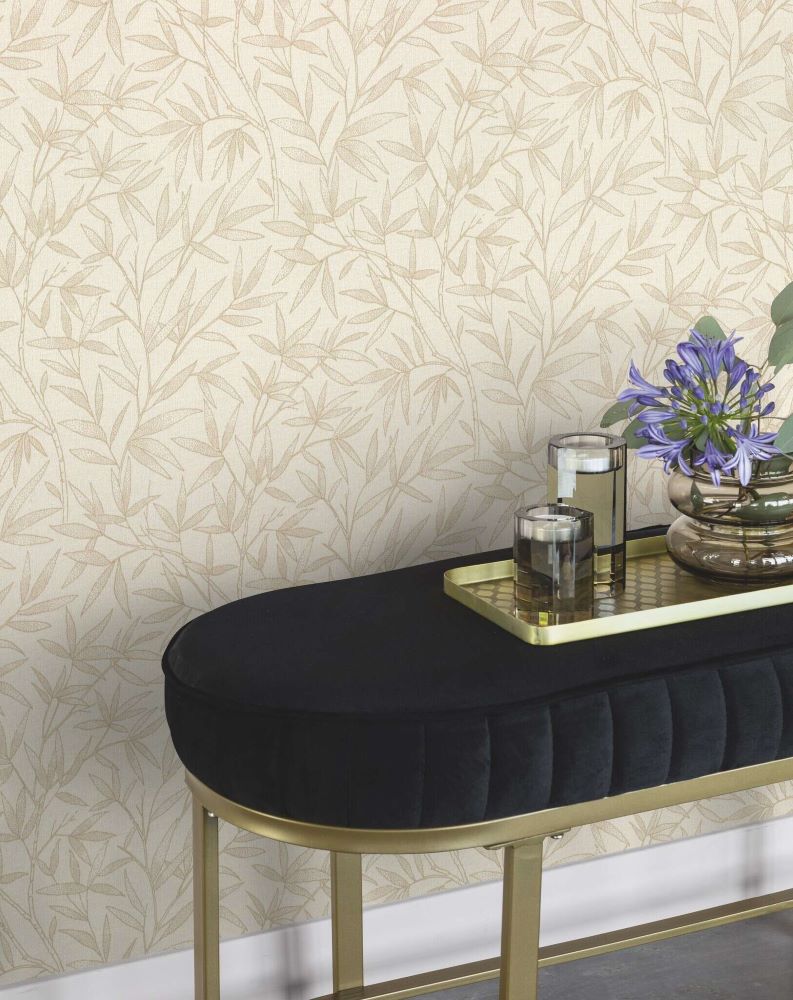 Dit behang heeft een zacht, rustgevend ontwerp dat wordt gekenmerkt door delicate bamboetakken in een warme beigetint. De fijne, grafisch getekende bladeren geven de ruimte een elegante en natuurlijke uitstraling. De lichte, neutrale achtergrond zorgt voor een subtiele en harmonieuze look, waardoor het behang perfect is voor ruimtes die een rustige maar stijlvolle sfeer nodig hebben. Ideaal voor woonkamers of slaapkamers, waar het een ontspannen en gezellige ambiance creëert.