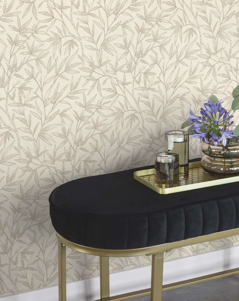 Het behang heeft een rustgevend en elegant patroon van delicate bamboetakken in een warme, zachte beige tint. De fijne lijnen en filigrane bladeren geven het behang een natuurlijke en lichte uitstraling. Het is perfect voor ruimtes die een kalme sfeer met een vleugje natuur nodig hebben. De subtiele, lichtbeige achtergrond harmonieert perfect met de delicate takken en creëert een stijlvolle en moderne uitstraling. Ideaal voor woonkamers, slaapkamers of entreegebieden die opgewaardeerd moeten worden met een elegant maar ingetogen ontwerp.